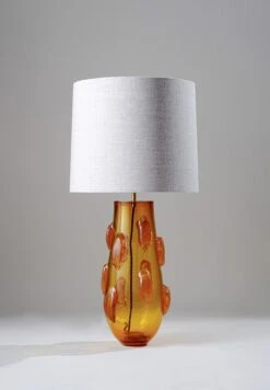 A tall, teardrop shaped glass lamp inspired by a 1950’s design, the Quincy lamp is expertly handblown and finished with a series of coloured glass ‘blobs’. Available in three striking colourways, Pickle, Amber or Cadmium.