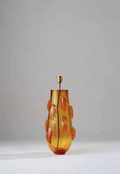 A tall, teardrop shaped glass lamp inspired by a 1950’s design, the Quincy lamp is expertly handblown and finished with a series of coloured glass ‘blobs’. Available in three striking colourways, Pickle, Amber or Cadmium.