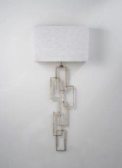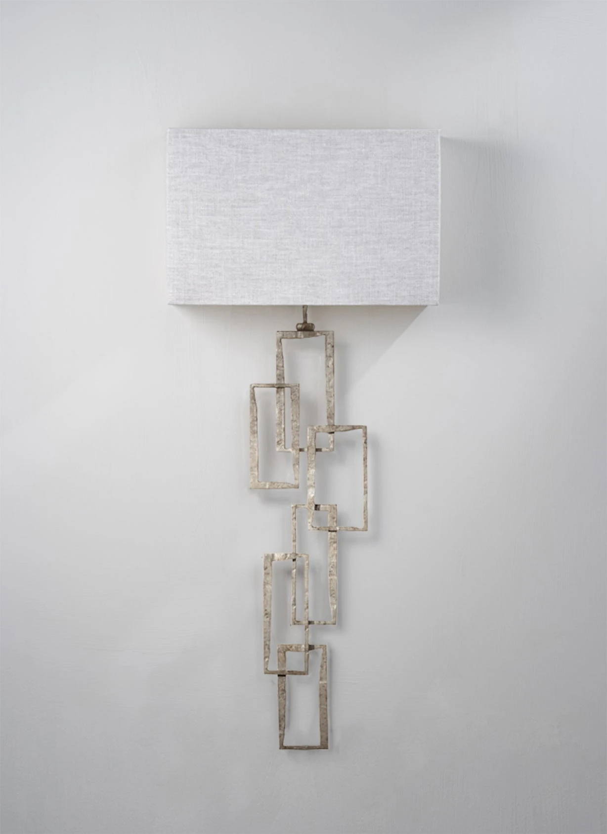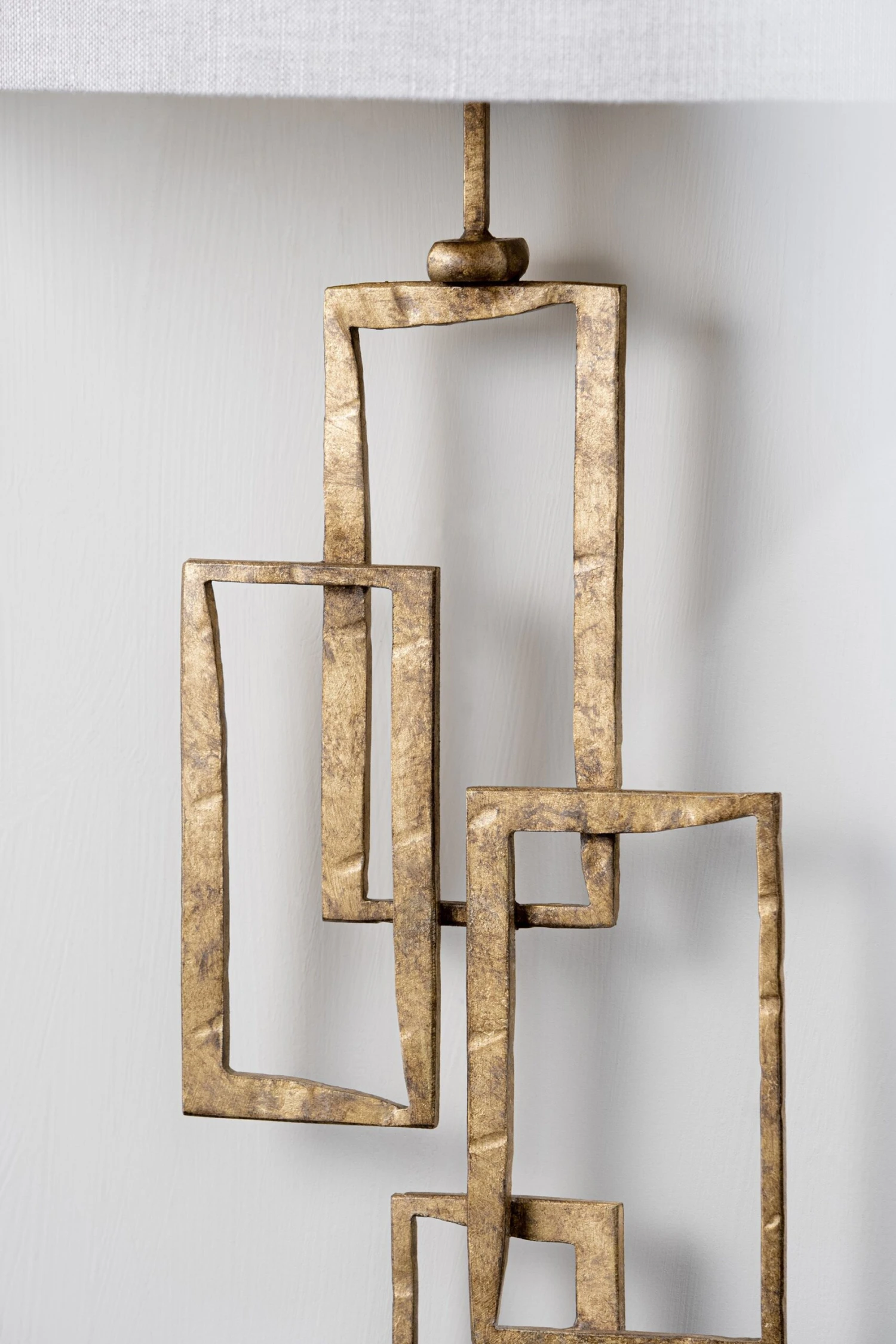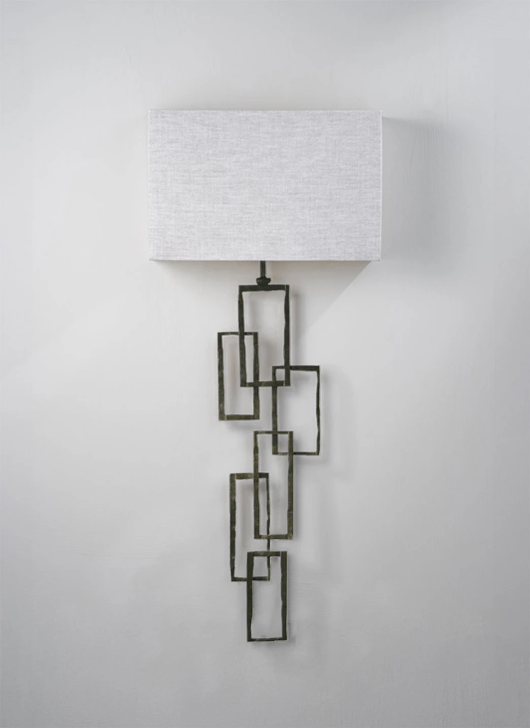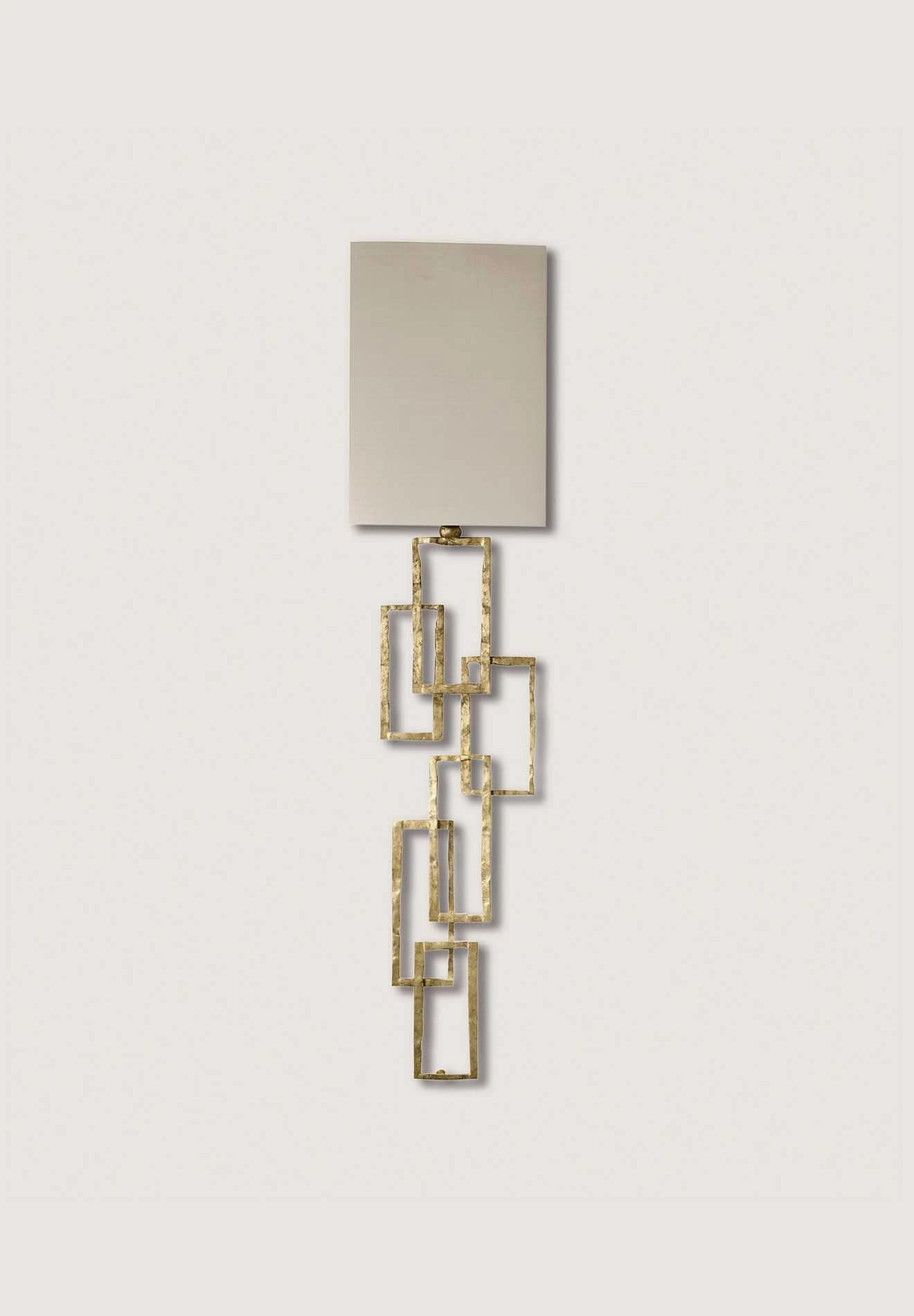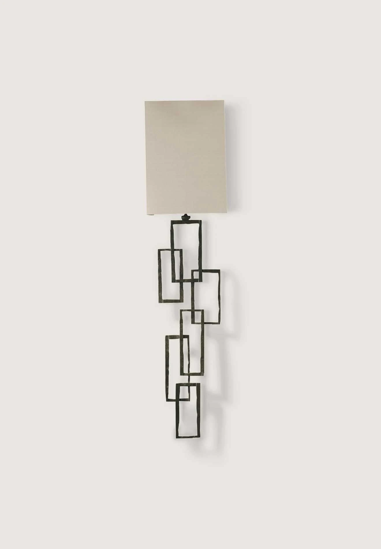 The Salperton pieces are characterised by their clean-cut, geometric forms and softly beaten metal bars. When lit, the Large Salperton forms a delicate silhouette.