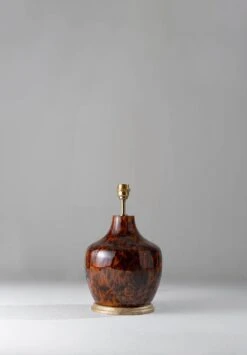 The Sampson lamp has the same body shape as the classic Rigby lamp in our collection, a ‘go to’ table lamp design for anyone wanting to give a room a traditional and classical feel. Sampson has updated proportions omitting the neck of the lamp to create a shorter silhouette. Still mounted on a custom gold leafed wooden plinth, available in a standout new glaze, Tigers Eye.