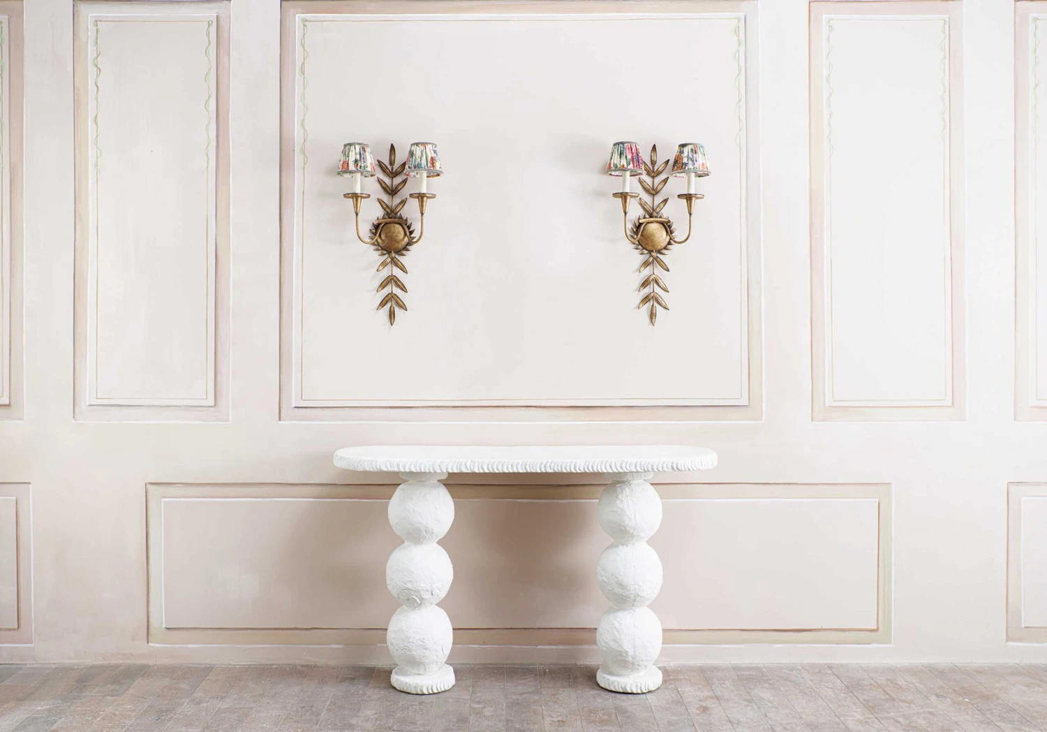 The Selina Console Table was designed by Viola Lanari and made following a production method used by Diego Giacometti. Viola created her collection for Porta Romana around the circle, the sphere and their interaction with light.