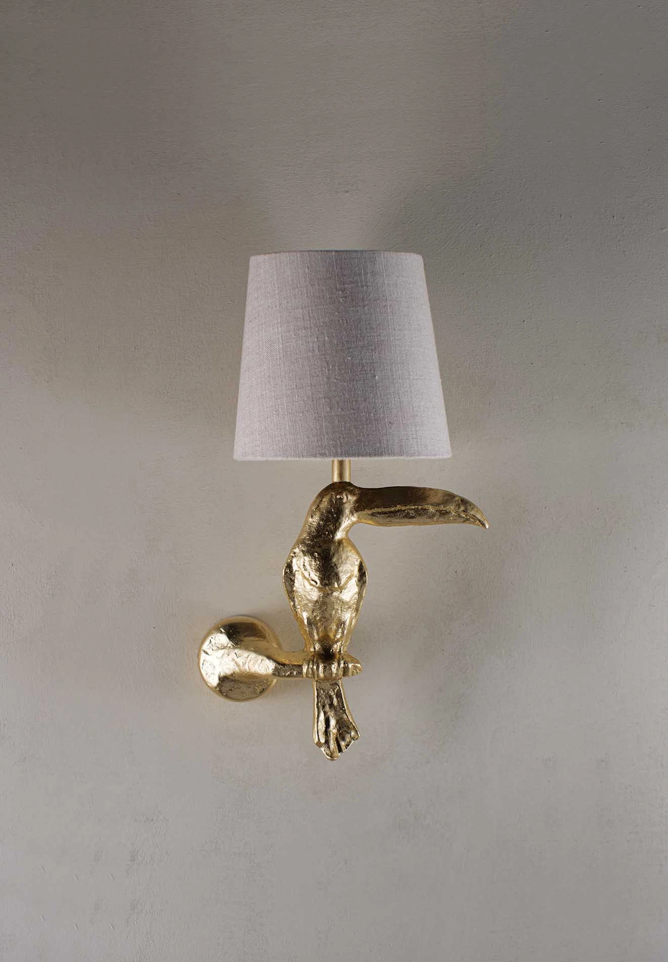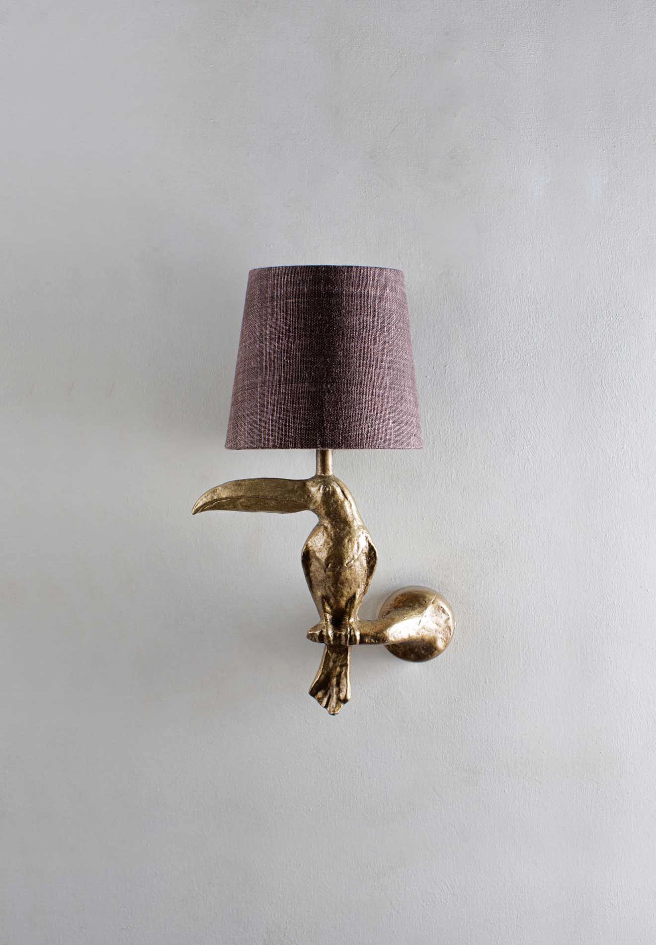 The Toucan joins the rest of the Porta Romana menagerie and is available as both a left and right-facing wall light. This product is Not UL listed.
