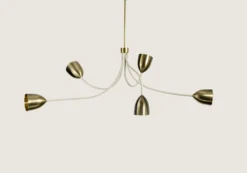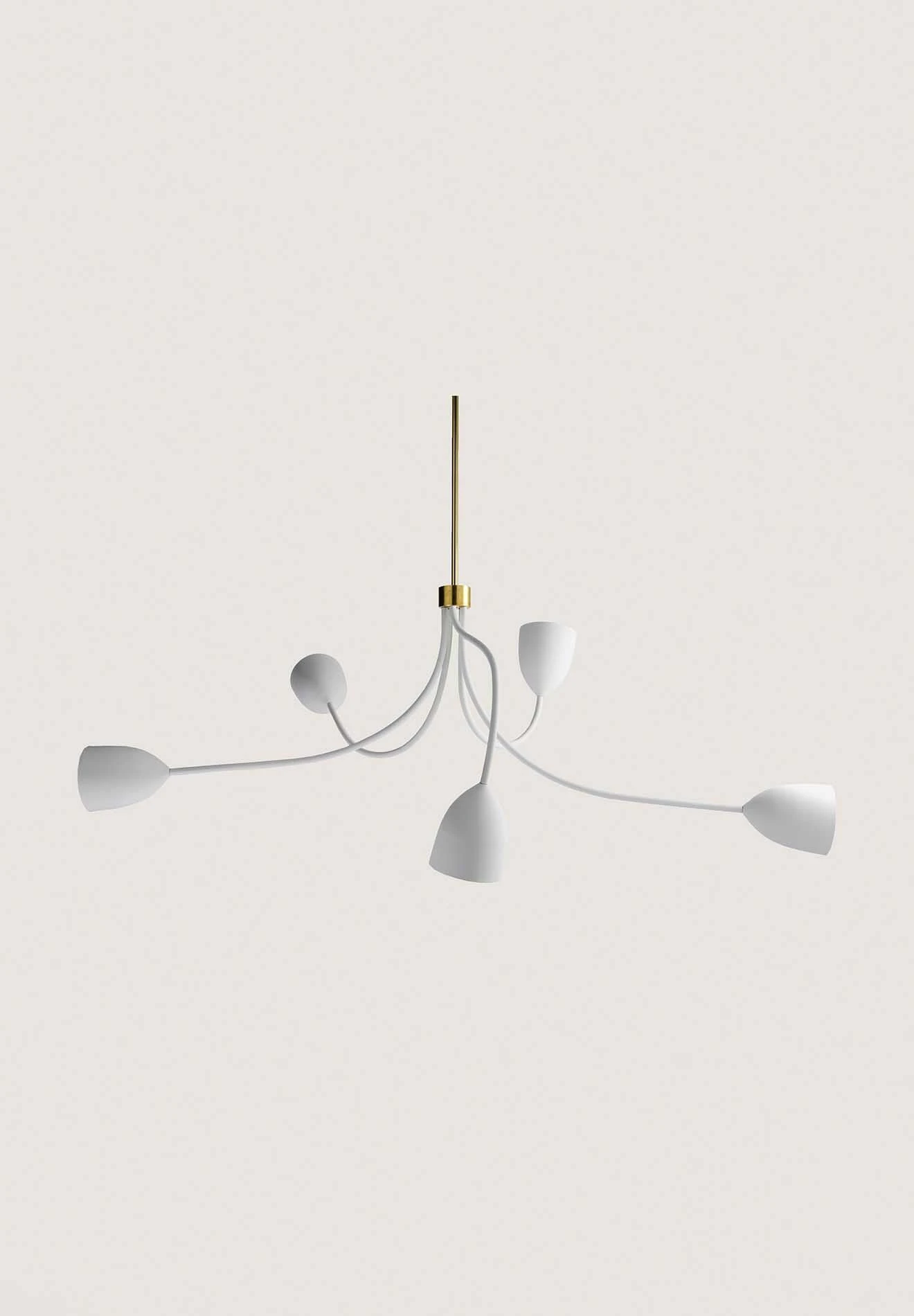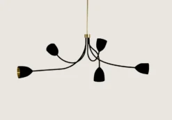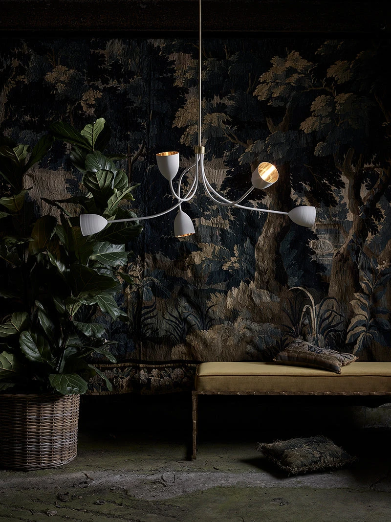 The Tulip Ceiling Light is fitted with spun brass shades, sitting at the end of forged steel stems reminiscent of tulips. It can be painted in any colour.